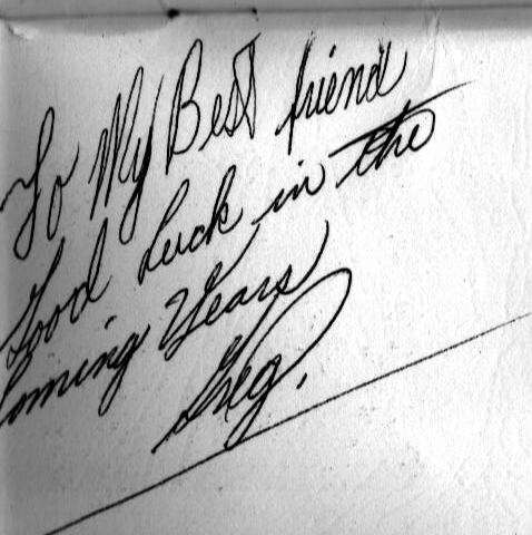 I am sorry to hear you are gone Greg. There was a vulgar song you sung in Junior High that made me laugh. I realize that those recitations in Social Studies was you way of teaching me to lighten up. I am sorry I never understood. But you left some kind words in my 65 Echo Yearbook: "To my best friend, Good Luck in the coming years. Greg". Thank you Greg. I am thankful for a mutual friend who helped me remember this. Your friend Larry |